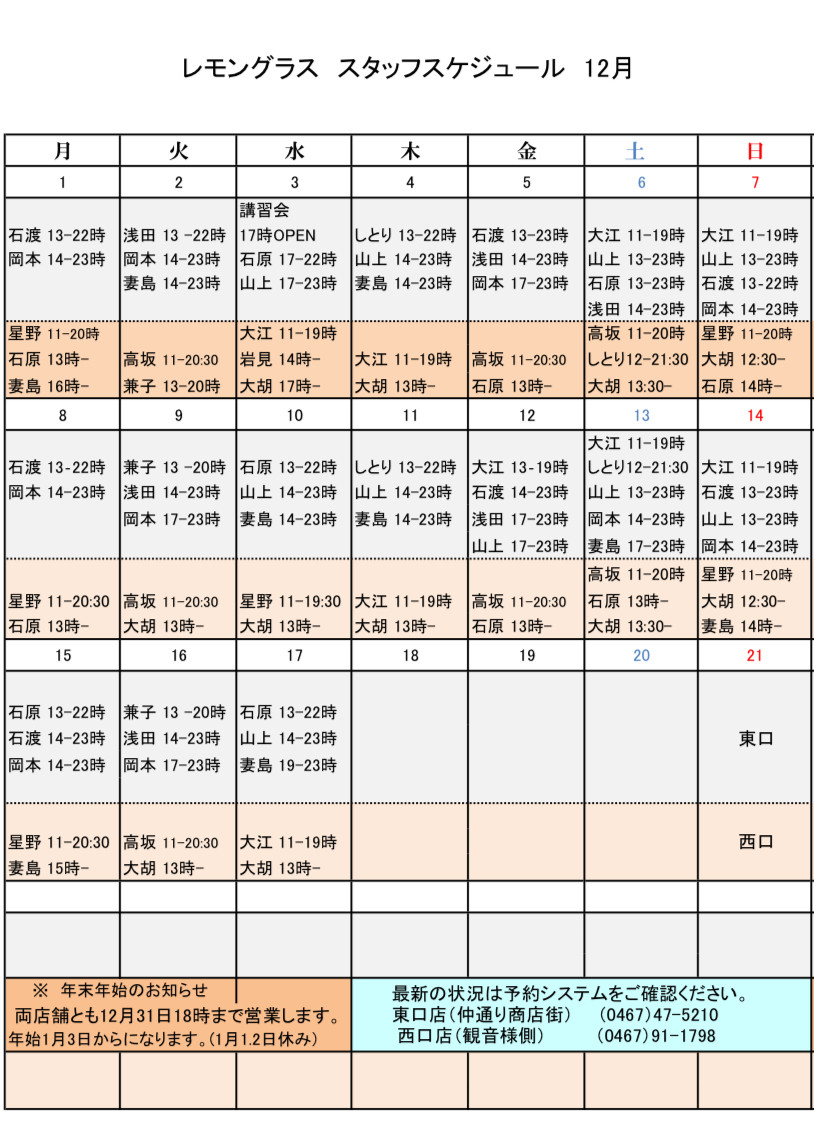 ※妻島3日~12日までタイ渡航のためお休みを頂戴いたします。
